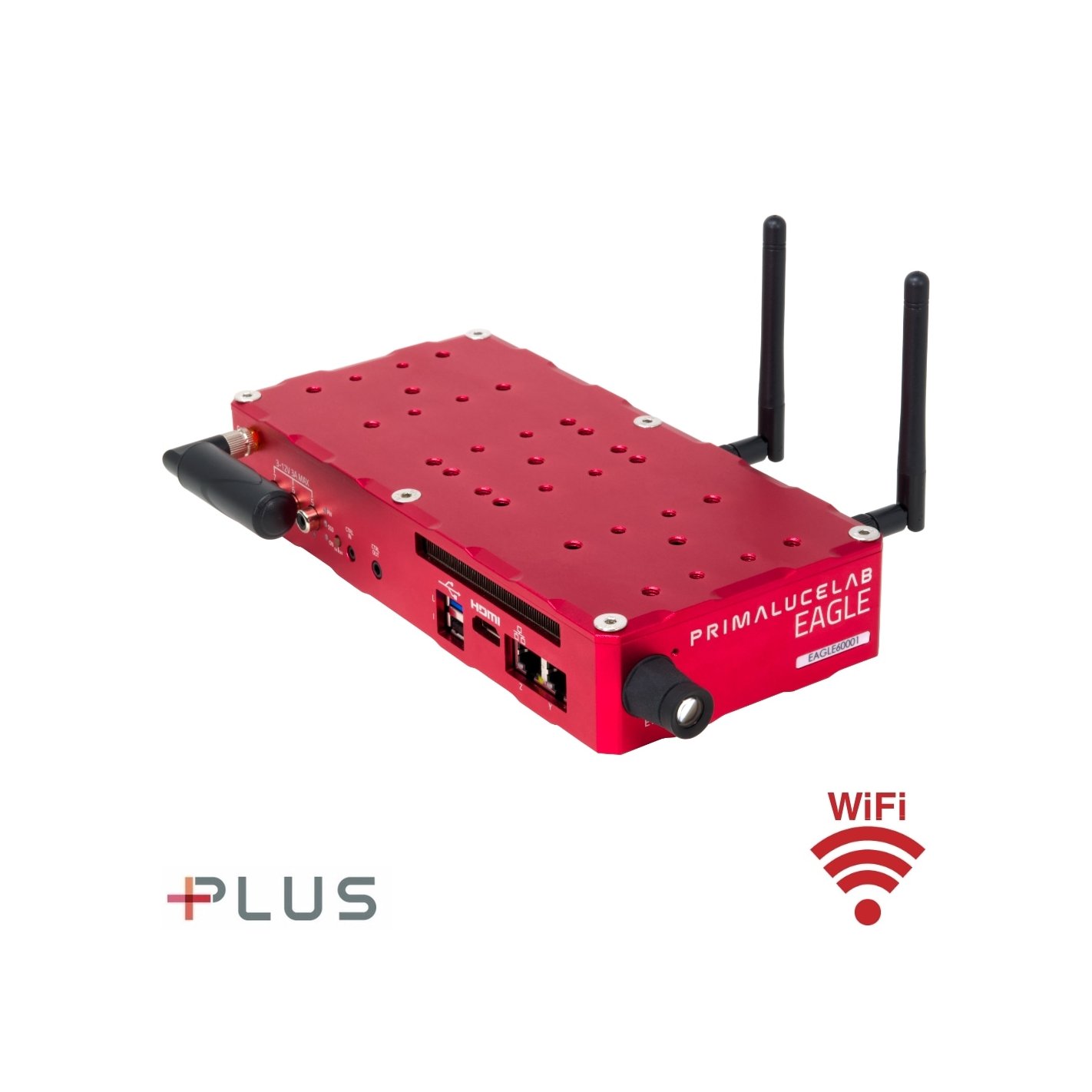 Thanks to the special PLUS case, you can connect the EAGLE to any type of telescope: refractors, Schmidt-Cassegrains, Ritchey-Chretiens, Newtonians, and others. Thanks to the many threaded holes on the EAGLE’s chassis and the availability of various PLUS systems accessories (support rings, dovetail bars, dovetail clamps), connecting the EAGLE to your telescope is easy. By using EAGLE instead of a laptop or desktop computer, your telescope will have less cables and shorter runs that will move in unison with your telescope (this drastically reduces the potential for cable snagging or detaching while your telescope tracks the stars across the sky). The EAGLE also has lower power consumption, reducing the battery capacity needed to power your complete telescope all night long. The electronic internal components were designed for field use in extended temperature ranges. This way you can rely on it all night long, in higher humidity conditions since the small amount of internal heat generated by the processor slightly warms the chassis of the EAGLE, helping to prevent dew from forming on body or EYE lens.